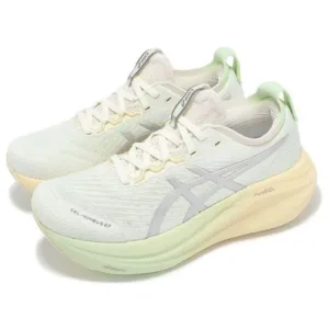 The ASICS GEL-NIMBUS 27 is a highly cushioned, max-cushion running shoe designed for comfort on long and steady runs. It features an updated jacquard mesh upper for a soft, breathable fit and a midsole that combines high-stack FF BLAST™ PLUS ECO cushioning with PureGEL™ technology for a soft and smooth ride. The shoe also includes a new HYBRID ASICSGRIP™ outsole for improved durability and grip